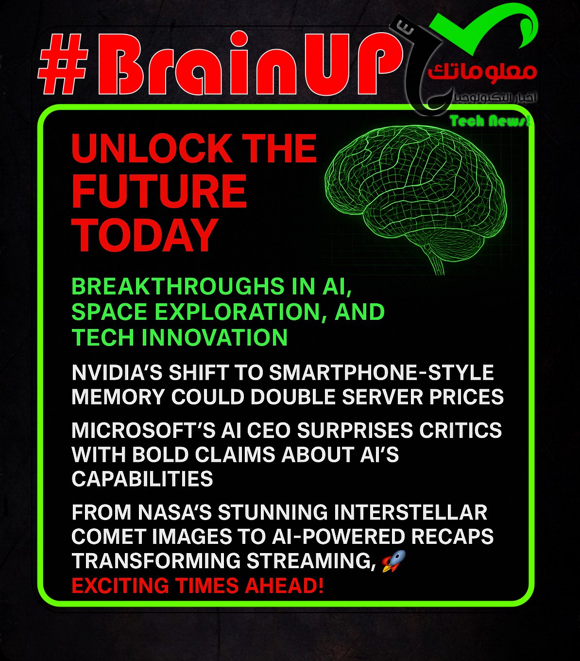 Unlock the future today with breakthroughs in AI, space exploration, and tech innovation. Nvidia’s shift to smartphone-style memory could double server prices, while Microsoft’s AI CEO surprises critics with bold claims about AI’s capabilities. From NASA’s stunning interstellar comet images to AI-powered recaps transforming streaming, these advances promise a smarter, more connected world. Exciting times ahead!