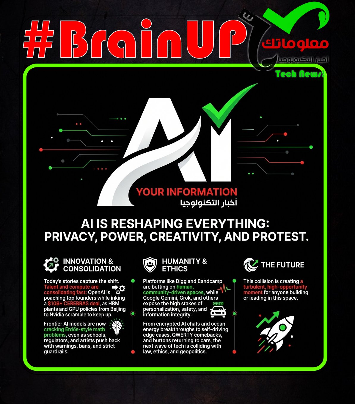 AI is reshaping everything from privacy and power to creativity and protest, and today’s stories capture that shift in real time. Talent and compute are consolidating fast: @OpenAI is poaching top founders while inking a $10B+ #Cerebras deal, as #HBM plants and GPU policies from Beijing to Nvidia scramble to keep up. Frontier #AI models are now cracking Erdős-style math problems, even as schools, regulators and artists push back with warnings, bans and strict guardrails. Platforms like @Digg and @Bandcamp are betting on human, community driven spaces, while @Google Gemini, @Grok and others expose the high stakes of personalization, safety and information integrity. From encrypted AI chats and ocean energy breakthroughs to self driving edge cases, QWERTY comebacks and buttons returning to cars, the next wave of tech is colliding with law, ethics and geopolitics, creating a turbulent, high opportunity moment for anyone building or leading in this space. …