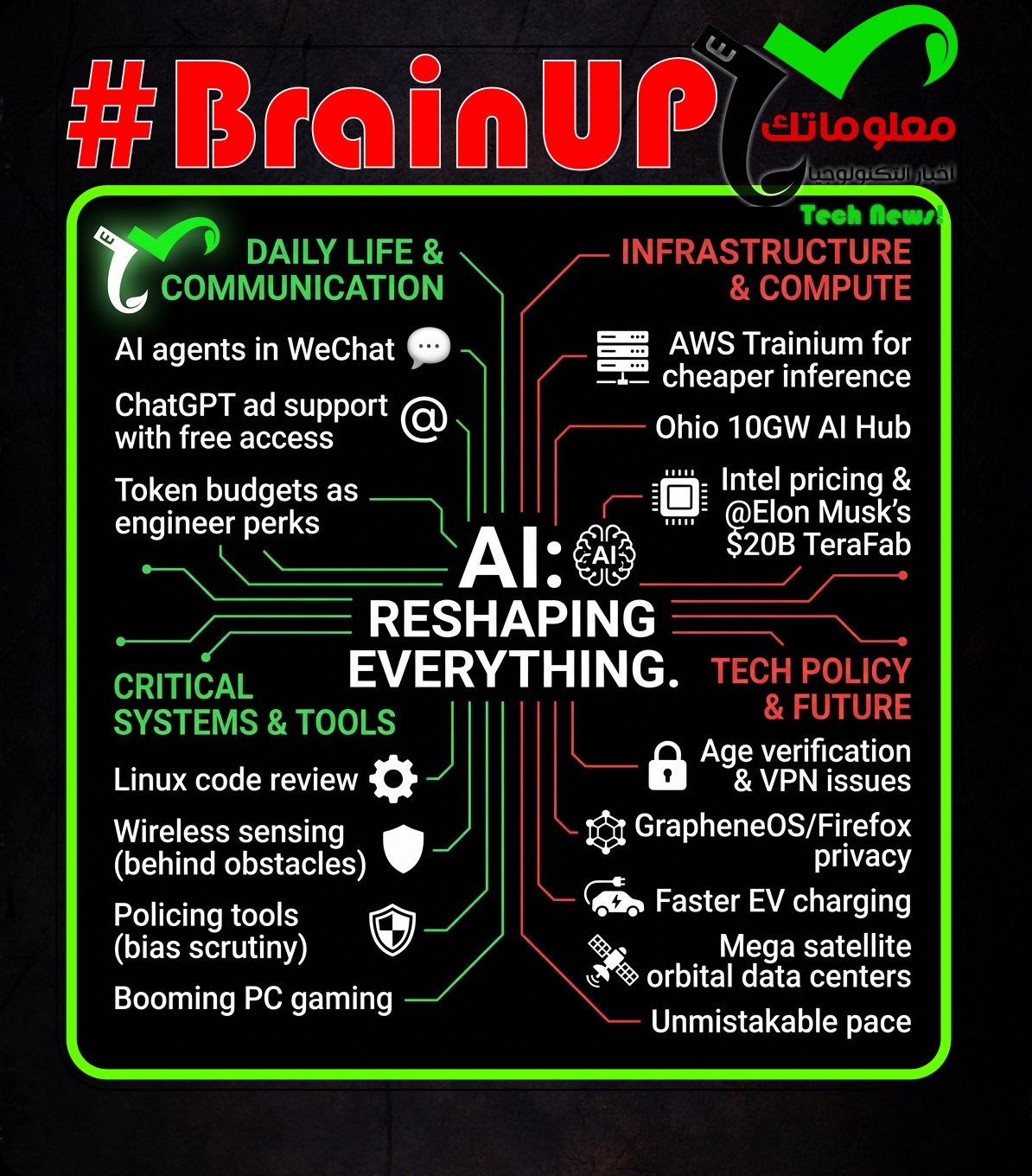 AI is reshaping everything, from how we chat to how we power the world. OpenAI is reportedly preparing broader ad support in ChatGPT while keeping free and low cost access, as AI compute becomes a real line item, even “token budgets” are emerging as a new perk for engineers. The infrastructure race is accelerating: AWS Trainium is pulling major model builders toward cheaper inference, Ohio is planning a 10 gigawatt AI data hub, and chip momentum spans Intel pricing pressure to @Elon Musk’s $20B TeraFab ambitions. Meanwhile, AI is moving into daily platforms like WeChat agents, and into critical systems like Linux code review, wireless networks that can infer what is behind obstacles, and policing tools facing bias scrutiny. Tech policy is heating up too: age verification could trigger VPN crackdowns, while GrapheneOS and Firefox push privacy first approaches. Add faster EV charging, booming PC gaming, and rising concerns over mega satellite “orbital data centers,” and the pace feels unmistakable. …