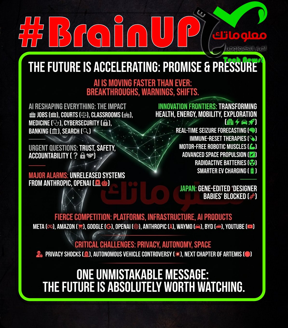 AI is moving faster than ever, and today’s tech pulse is packed with breakthroughs, warnings, and big strategic shifts. From Japan’s move to block gene-edited “designer babies” to major alarms around powerful unreleased AI systems from Anthropic and OpenAI, the future is arriving with equal parts promise and pressure. We’re seeing AI reshape jobs, courts, classrooms, medicine, cybersecurity, banking, and search, while also raising urgent questions about trust, safety, and accountability. On the innovation front, real-time seizure forecasting, immune-reset therapies, motor-free robotic muscles, advanced space propulsion, radioactive batteries, and smarter EV charging show how deeply technology is transforming health, energy, mobility, and exploration. Meanwhile, Meta, Amazon, Google, OpenAI, Anthropic, Waymo, BYD, and YouTube are all making moves that signal fierce competition across platforms, infrastructure, and AI products. Add in privacy shocks, autonomous vehicle controversy, and the next chapter of Artemis, and you get one unmistakable message: the future is accelerating, and it is absolutely worth watching. …