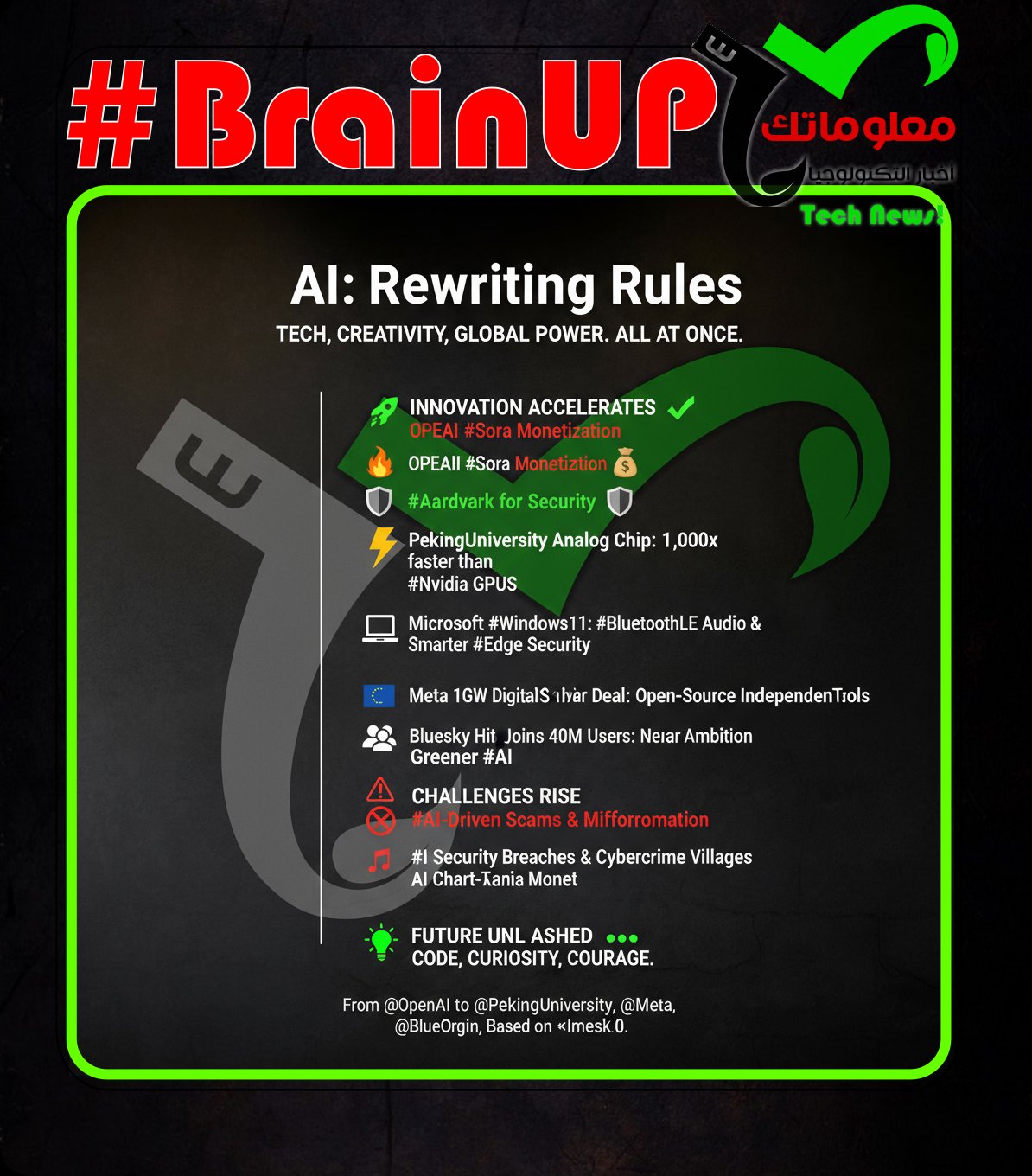 AI is rewriting the rules of tech, creativity, and global power all at once. From @OpenAI’s new #Sora monetization and the launch of #Aardvark for agentic security, to @PekingUniversity’s analog chip that outpaces @Nvidia GPUs by 1,000x, innovation is accelerating fast. @Microsoft is boosting #Windows11 with #BluetoothLE audio and smarter #Edge security, while Europe doubles down on #digitalSovereignty through open-source independence. Meanwhile, @Meta’s 1 GW solar deal powers greener #AI, @BlueOrigin joins #NASA’s lunar ambitions, and @Bluesky hits 40 million users with new personalization tools. Yet challenges rise too: #AI-driven scams, misinformation, and security breaches reveal the double edge of progress. From cybercrime villages to AI chart-toppers like Xania Monet, the world is witnessing a collision of creativity, ethics, and technology. The future is unfolding faster than ever, and it’s powered by code, curiosity, and courage.