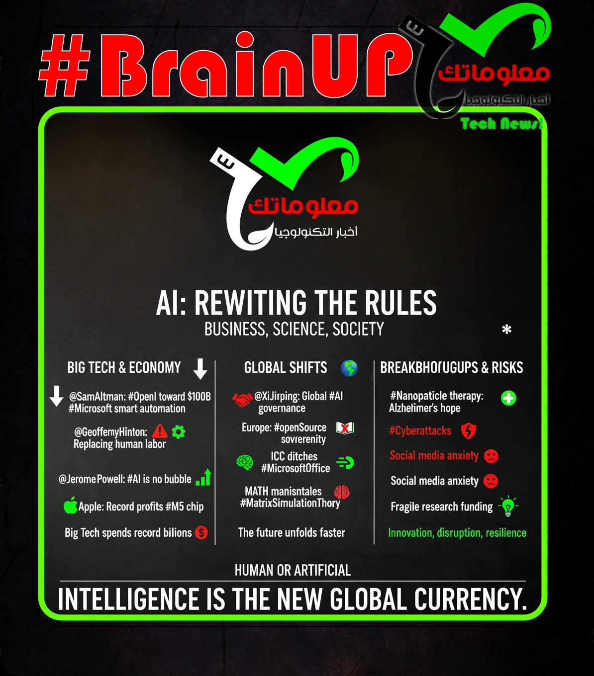 AI is rewriting the rules of business, science, and society. From @SamAltman projecting #OpenAI toward $100B revenue and @SatyaNadella reshaping #Microsoft’s workforce with smart automation, to @GeoffreyHinton warning that profit now depends on replacing human labor, the pace is breathtaking. @XiJinping calls for a global #AI governance body, while Europe pivots to #openSource sovereignty and the ICC ditches #MicrosoftOffice. Meanwhile, breakthroughs in #nanoparticle therapy revive hope for Alzheimer’s, and math itself dismantles the #MatrixSimulationTheory. Even as Big Tech spends record billions, @JeromePowell insists #AI is no bubble, and @Apple posts record profits with the #M5 chip. Yet risks persist: #cyberattacks, social media anxiety, and the fragility of research funding. Innovation, disruption, and resilience define this moment. The future is unfolding faster than ever, and every headline signals one truth: intelligence—human or artificial—is the new global currency.