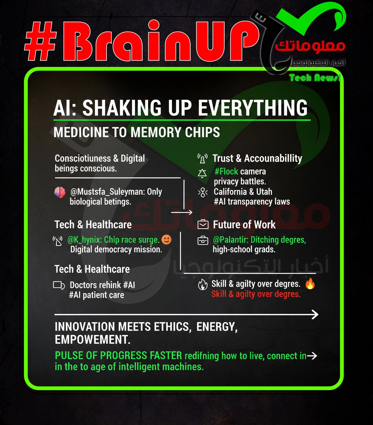 AI is shaking up everything from medicine to memory chips, and today’s stories prove it. From @Mustafa_Suleyman’s bold claim that only biological beings can be conscious, to @Audrey Tang’s mission to make digital democracy real, the human-AI relationship is being rewritten. @SK hynix surges ahead in the #chip race, while doctors rethink how #AI advice shapes patient care. Meanwhile, privacy battles over #Flock cameras, new #AI transparency laws in California and Utah, and @Google’s Gemma controversy reveal a world negotiating trust and accountability in real time. Even @Palantir is ditching degrees to hire high-school grads, showing how tech’s future belongs to skill and agility. It’s a week where innovation meets ethics, energy, and empowerment, and the pulse of progress beats faster than ever. Dive into the latest wave of ideas redefining how we live, work, and connect in the age of intelligent machines.