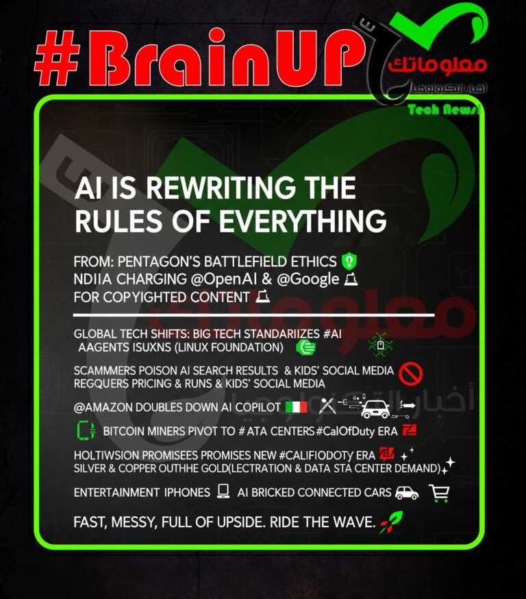AI is rewriting the rules of everything: from the Pentagon’s battlefield ethics and Nvidia’s anti‑smuggling chips, to India’s bold move to charge @OpenAI and @Google for training on copyrighted content. Big Tech is racing to standardize #AI agents under the Linux Foundation while scammers poison AI search results and regulators crack down on opaque AI pricing and kids’ social media access. In parallel, @Amazon doubles down on India, @Rivian builds an in‑car AI copilot, bitcoin miners pivot into #AI data centers, and silver and copper outshine gold on electrification and data center demand. Entertainment and gaming are in flux too, with @Activision promising a new era of #CallOfDuty and Hollywood locked in high‑stakes consolidation. From foldable iPhones and AI shopping feeds to hacked studios and bricked connected cars, today’s tech wave is fast, messy, and full of upside for those ready to ride it. …